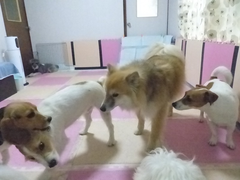 ノリノリな紋次郎くん、にこ丸くん、ジロビーくん。