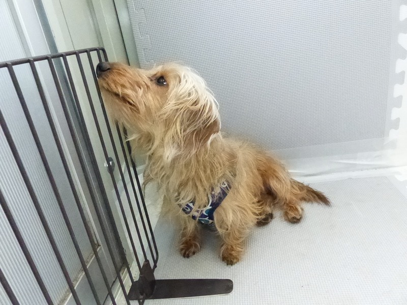 本入園のこはくちゃん。まだまだビビり気味です。頑張れ〜